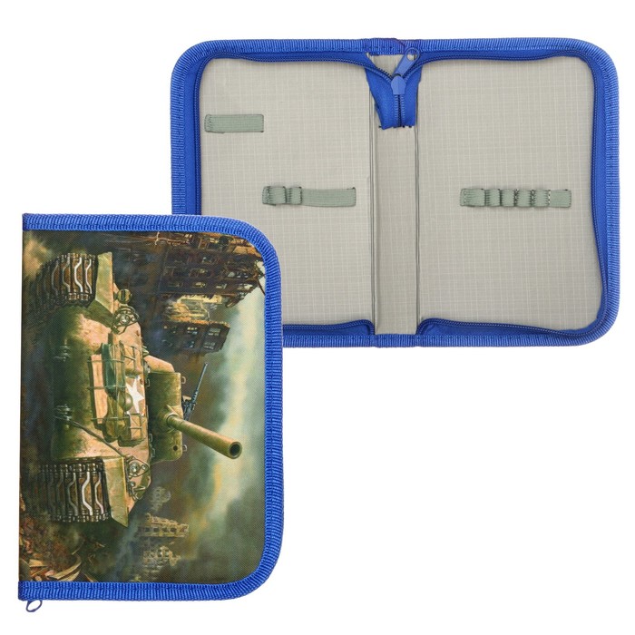 Пенал школьный "Танк", 13 х 19,5 см, 1 секция, на молнии, ткань