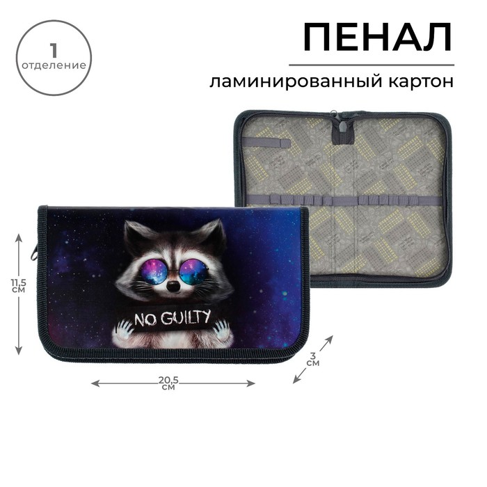 Пенал «Енот» 1 секция 115×205×30 мм, ламинированный картон