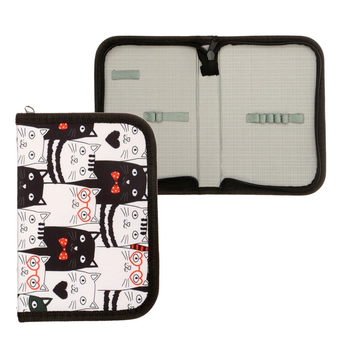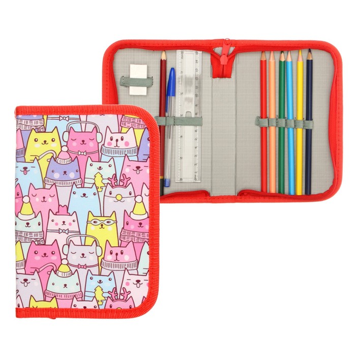 Пенал школьный «Котики», 13×19.5 см, на молнии, 1 секция, с наполнением, ткань