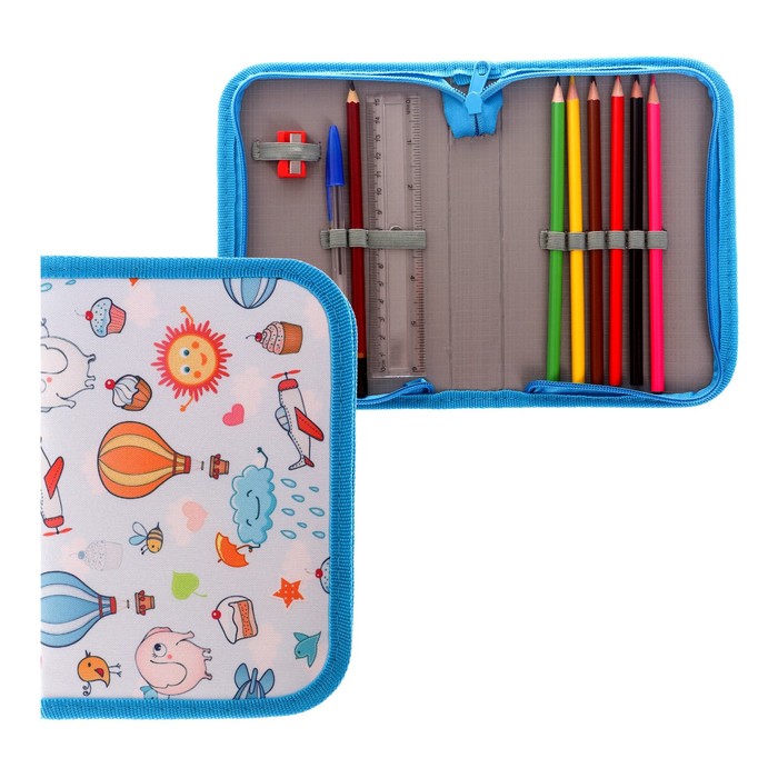 Пенал школьный «Небо», 13×19.5 см, на молнии, 1 секция, с наполнением, ткань