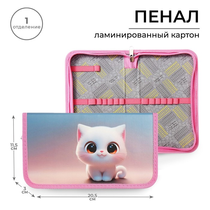 Пенал 1 секция 115 х 205 х 30 мм, Calligrata "Котик белый", ламинированный картон