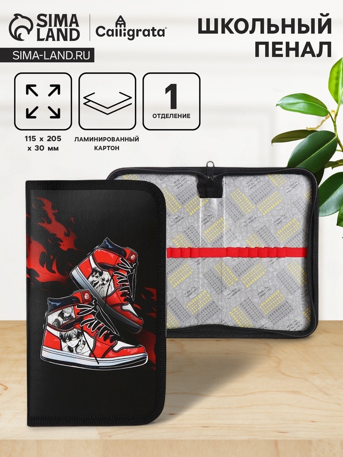 Пенал 1 секция 115×205×30 мм, «Кеды аниме», ламинированный картон
