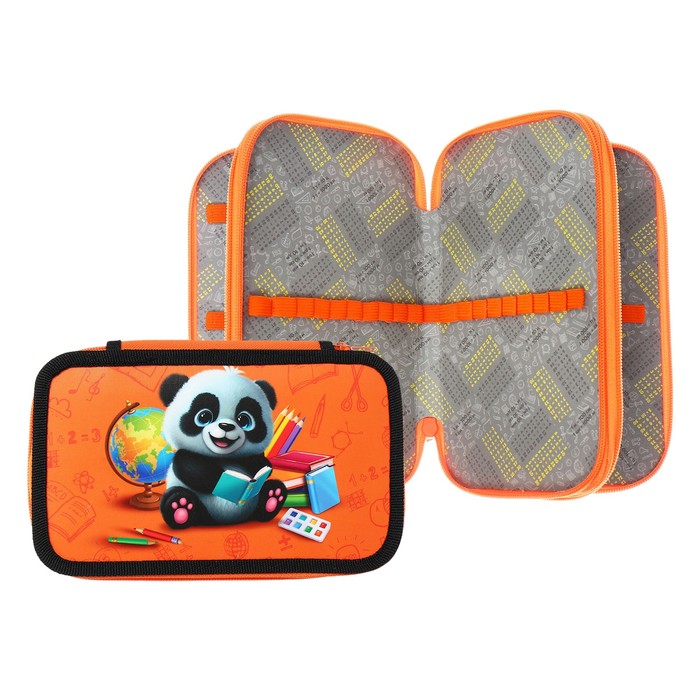 Пенал 3 секции, 125×205×55 мм, «Панда», ламинированный картон