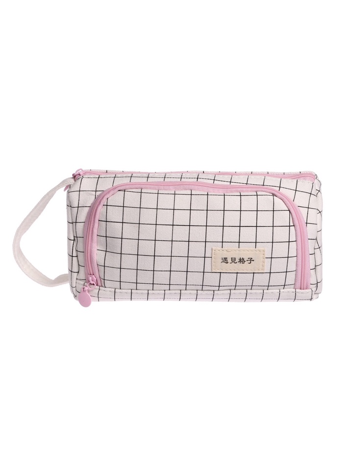 Пенал школьный Calligrata «Шотландка», мягкий, 2 отделения, 95×210×90 мм, объёмный с откидной планкой, с ручкой, бело-чёрный