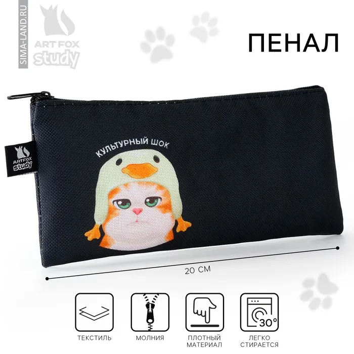 Пенал школьный текстильный «Кот в шоке», 20×8 см