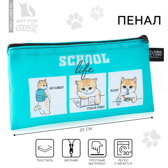 Пенал школьный текстильный «Котик в школе», 20×8 см