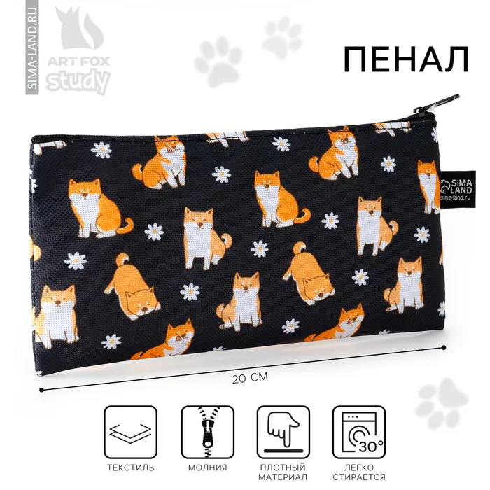 Пенал школьный мягкий «Зверята», 6.5×20 см