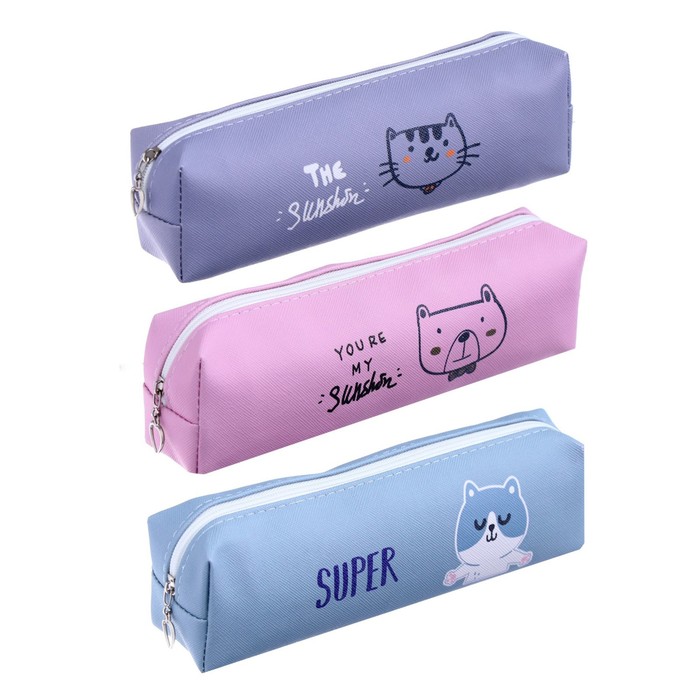Пеналы школьный на молнии "Зверьки", МИКС