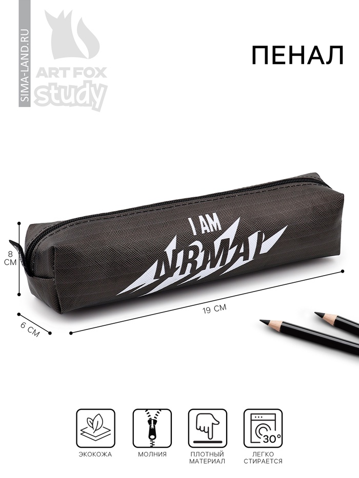 Пенал школьный из искусственной кожи I AM NRMAL, 19×8×3 см