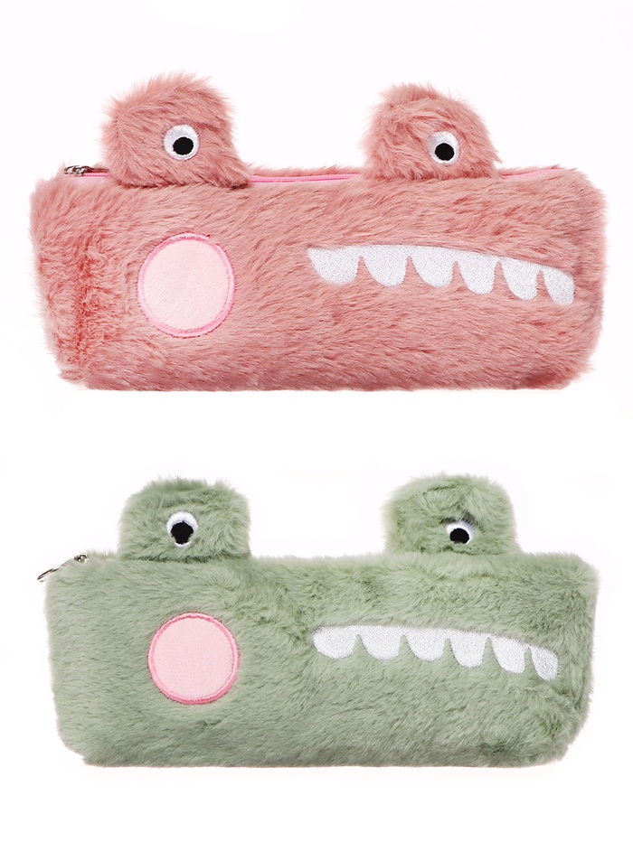 Пенал школьный на молнии "Мордочка", (с бомбошкой, меховой), МИКС