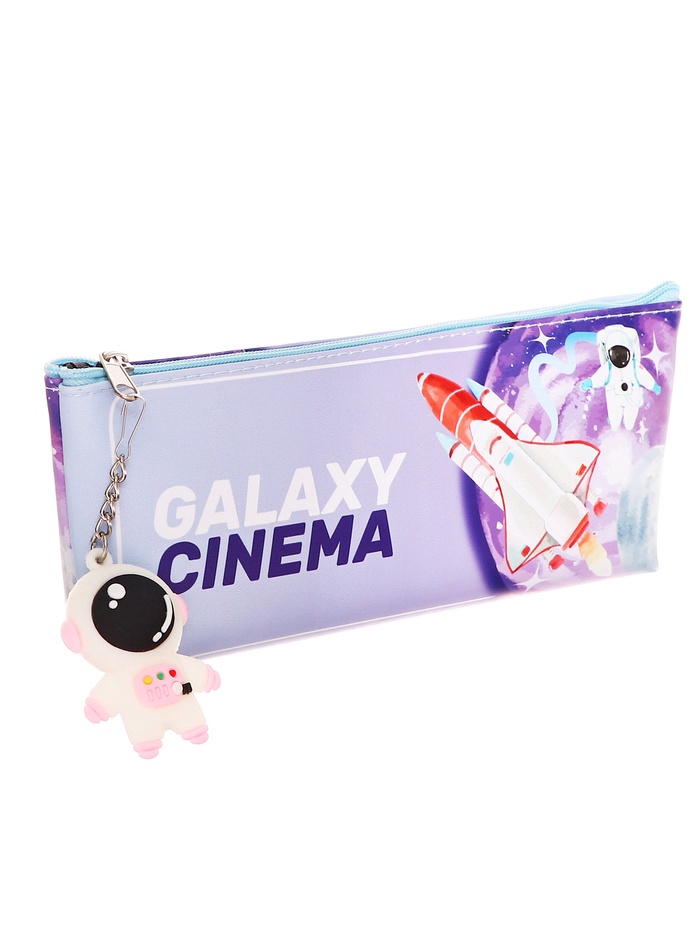 Пенал школьный на молнии Ракета Сиреневый, с подвеской