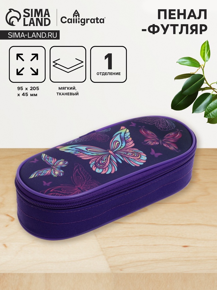 Пенал-футляр «Бабочки» 95×205×45 мм, мягкий, текстильный, резинка на клапане