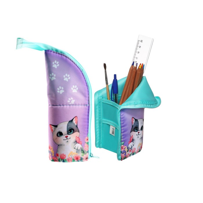 Пенал тубус-подставка «Котик в цветах», 85×210×65 мм, мягкий, тканевый