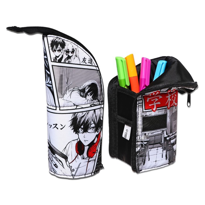 Пенал тубус-подставка, 85×210×65 мм, мягкий, тканевый, «Аниме»