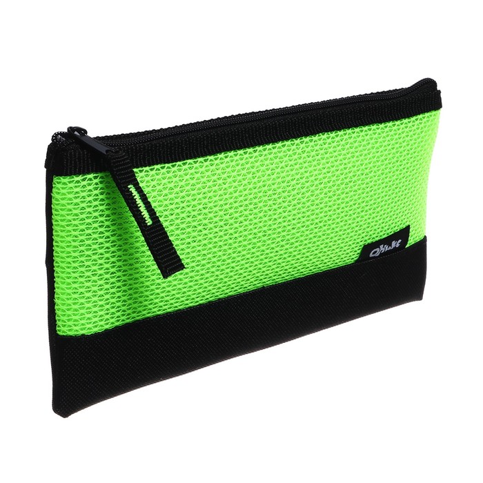 Пенал школьный Calligrata, мягкий, 1 отделение, 105×195 мм, плоский, чёрный/салатовый
