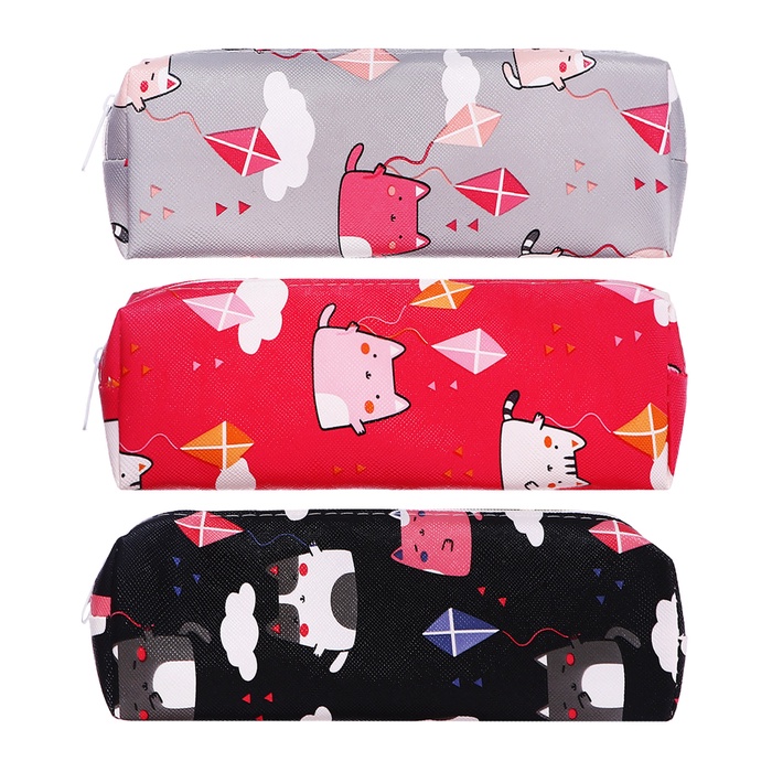 Пенал школьный "Кот", на молнии, силиконовый, розовый