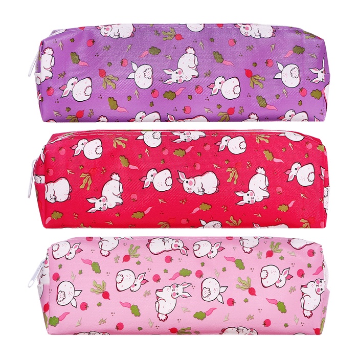 Пенал школьный меховой на молнии Calligrata "Зайка", микс