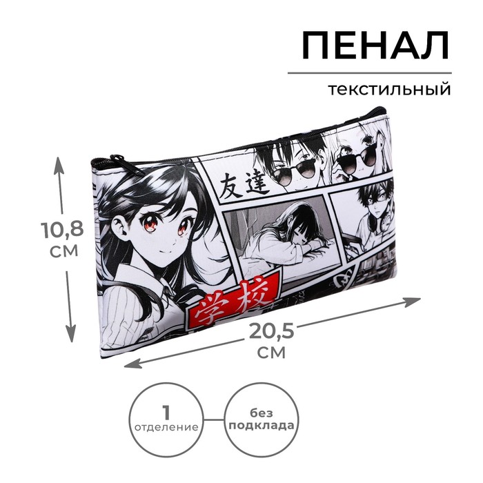 Пенал мягкий «Аниме», 1 отделение, 108×205 мм, плоский, Calligrata