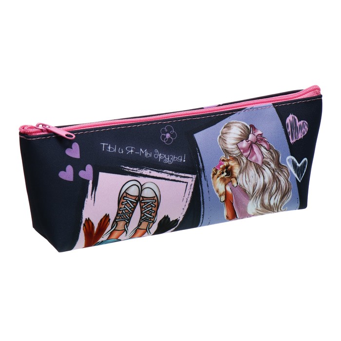 Пенал мягкий, 1 отделение, 80 х 190(225) х 40 мм, объёмный, ПМО 32-20 "Девочка с собачкой"