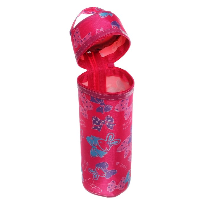 Пенал - тубус школьный на молнии "Бантики" малиновый