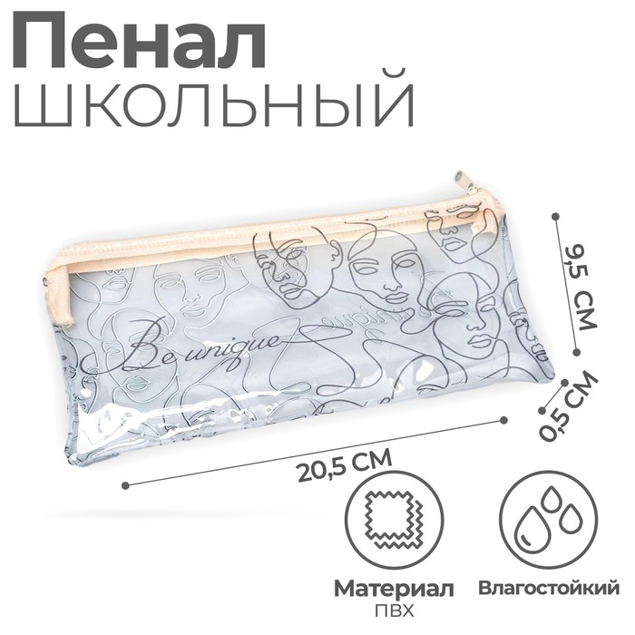 Пенал школьный на молнии Be unique, 20.5×9.5 см