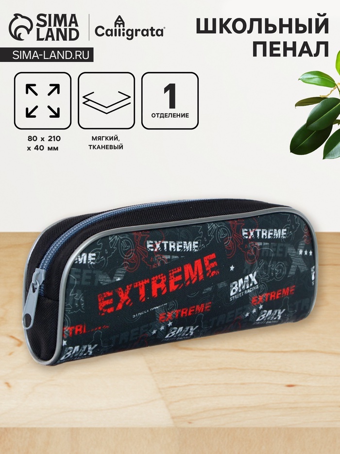 Пенал мягкий Extreme, 1 отделение, 80×210×40 мм, объёмный