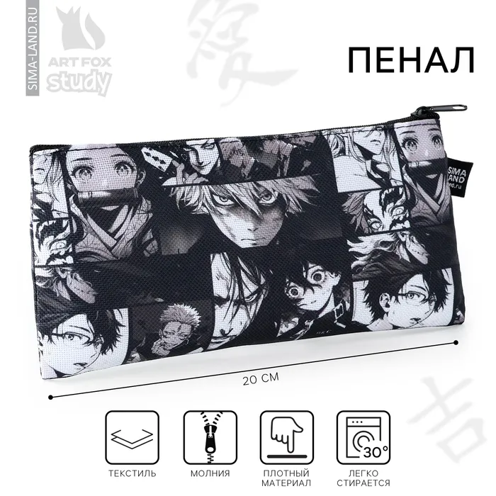 Пенал школьный текстильный «Аниме», 20×8 см