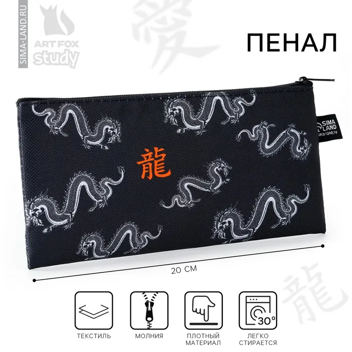 Пенал школьный текстильный «Дракон», 20×8 см