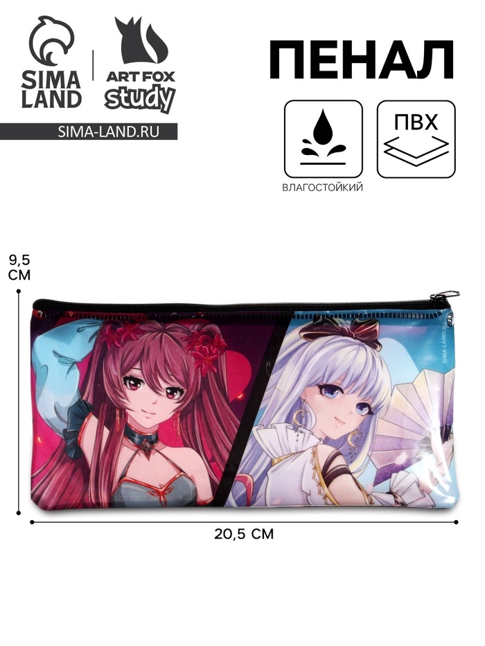 Пенал школьный, плоский, ПВХ, 9.5×20.5 см «Девочка аниме»