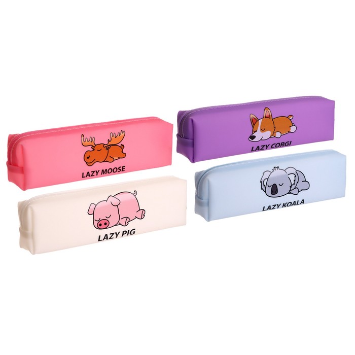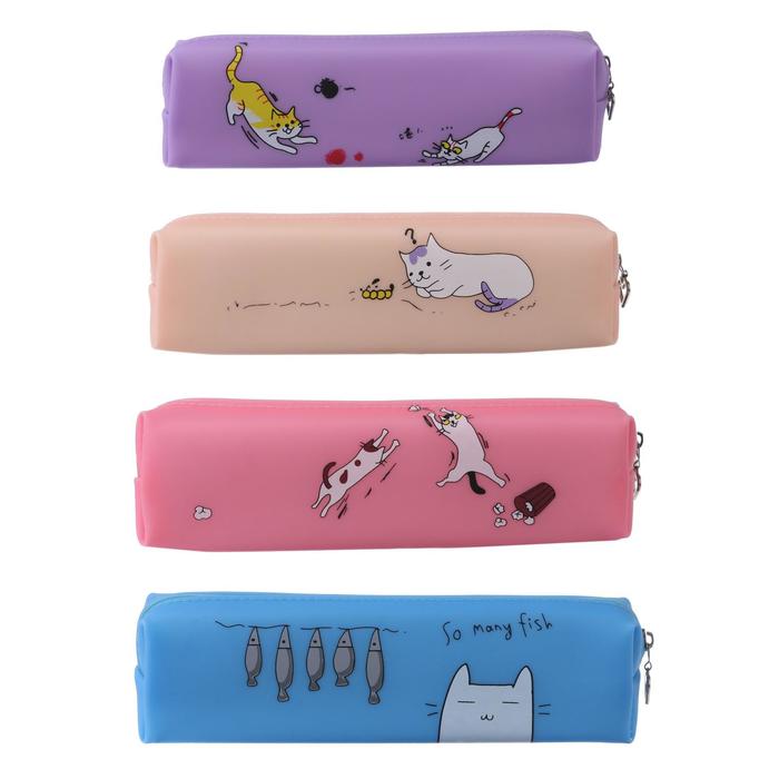 Пенал школьный на молнии силиконовый «Кот», МИКС