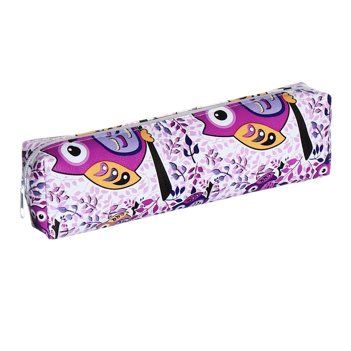 Пенал школьный на молнии Calligrata «Совы», фиолетовый