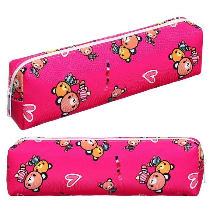 Пенал школьный на молнии Calligrata «Мишки», с принтом, розовый