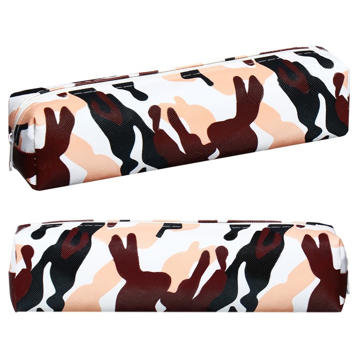 Пенал школьный на молнии «Миллитари» Calligrata, черно-коричневый