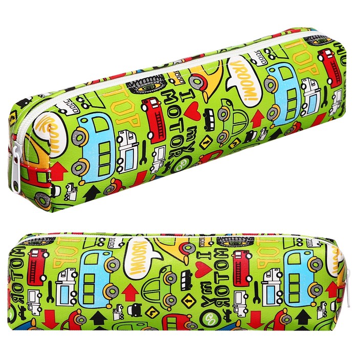 Пенал школьный на молнии «Машинки» Calligrata, зеленый
