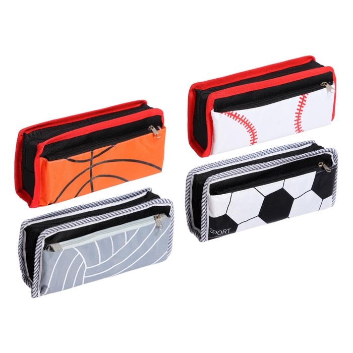 Пенал школьный на молнии Calligrata "Мяч", 2 отделения, МИКС
