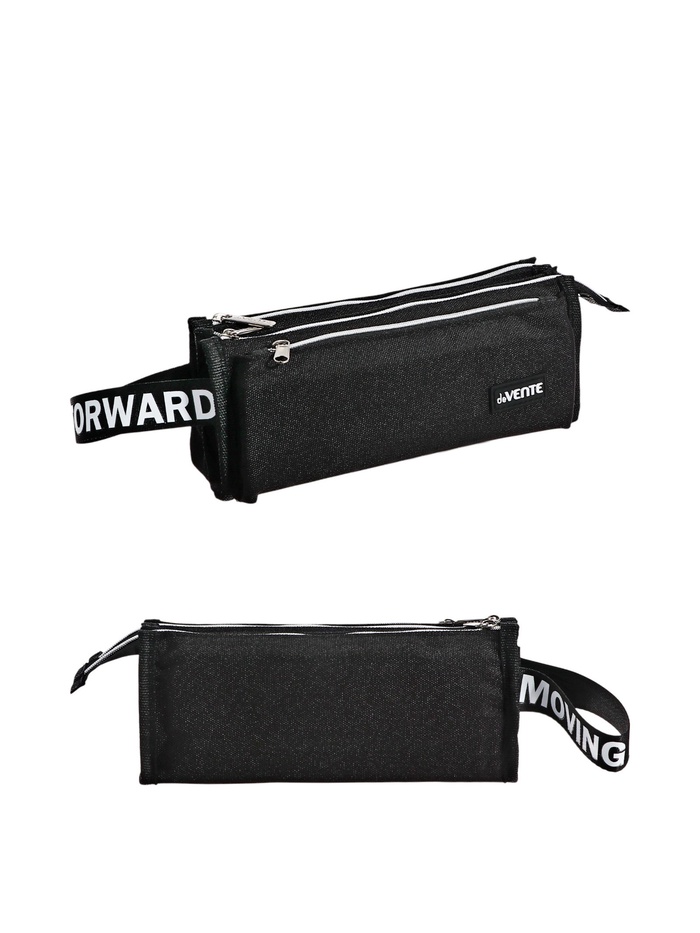 Пенал мягкий, 2 отделения и наружный карман 100 х 210 х 75 мм, объёмный, deVENTE Moving Forward. Black, с ручкой, вставки из экокожи