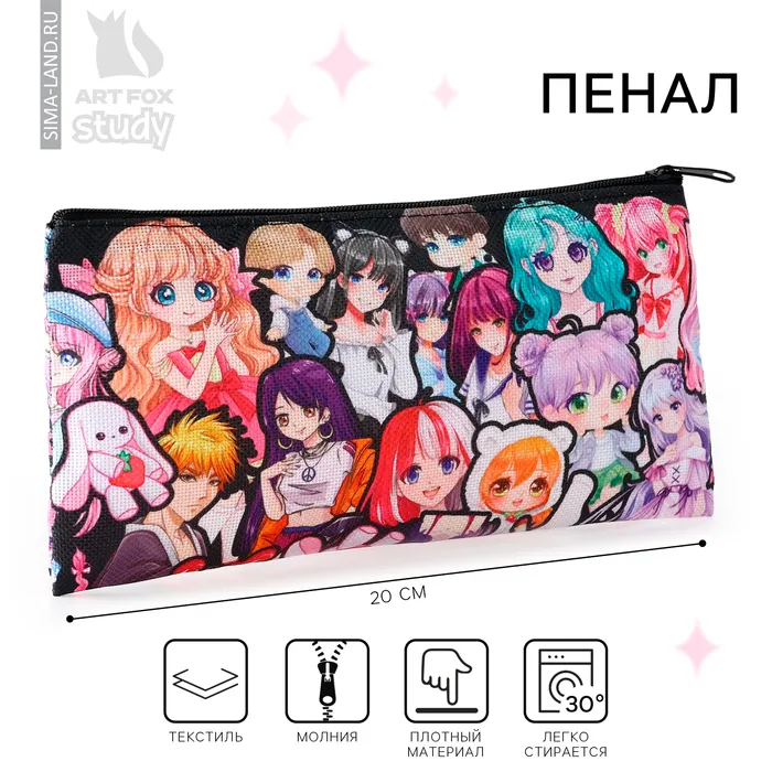 Пенал школьный текстильный «Стикер аниме», 20×8 см