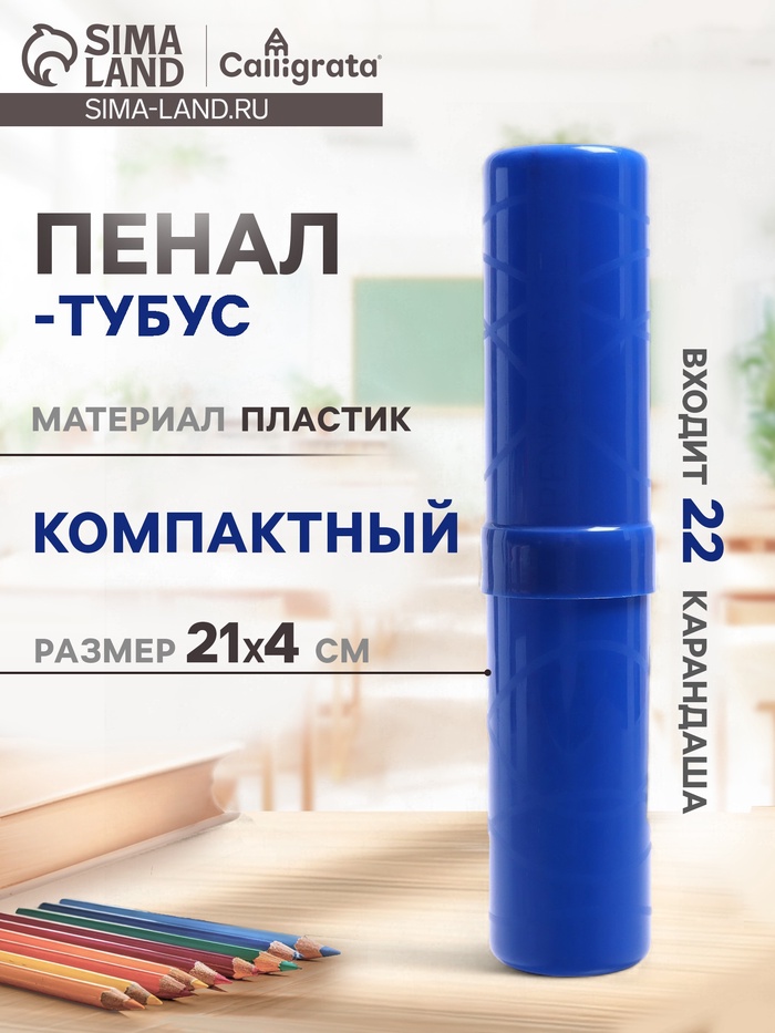 Пенал-тубус (40×195 мм) Calligrata, пластиковый, синий