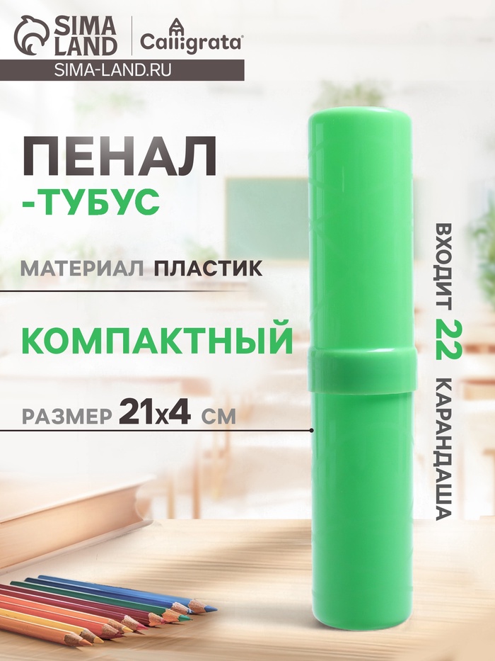 Пенал-тубус (40×195 мм) Calligrata, пластиковый, зеленый