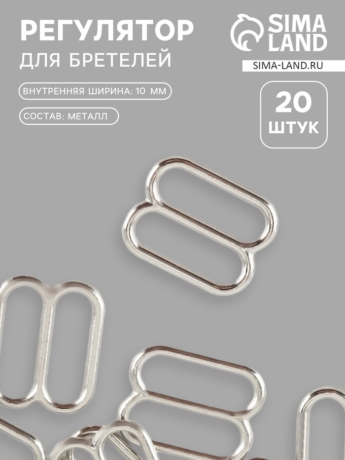 Регулятор для бретелей, металлический, 10 мм, 20 шт., цвет серебряный
