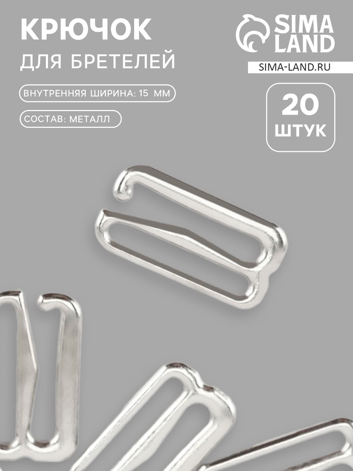 Крючок для бретелей, металлический, 15 мм, 20 шт., цвет серебряный
