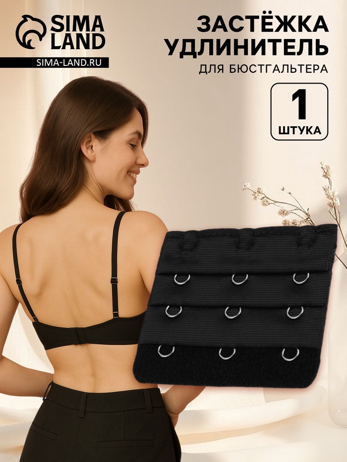 Застёжка-удлинитель для бюстгальтера, 3 ряда 3 крючка, 5×5.5 см, чёрная