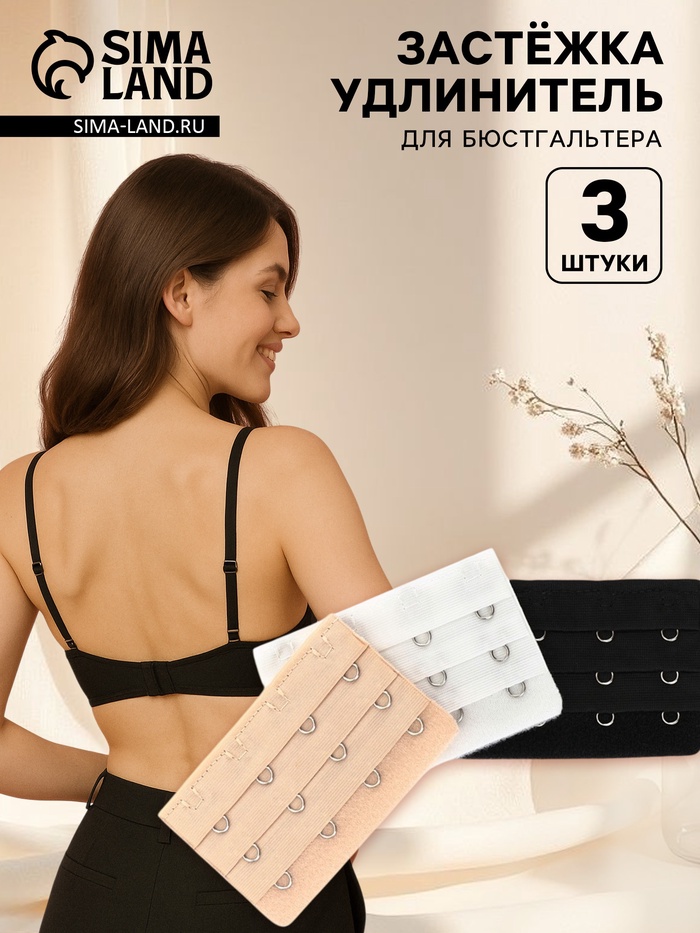 Застёжка-удлинитель для бюстгальтера TEIRA, 3 ряда 2 крючка, с резинкой, 10.5×3.2 см, набор 3 шт.