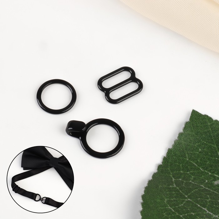Набор металлической фурнитуры для галстука-бабочки: кольцо, крючок, регулятор 1 см, цвет чёрный