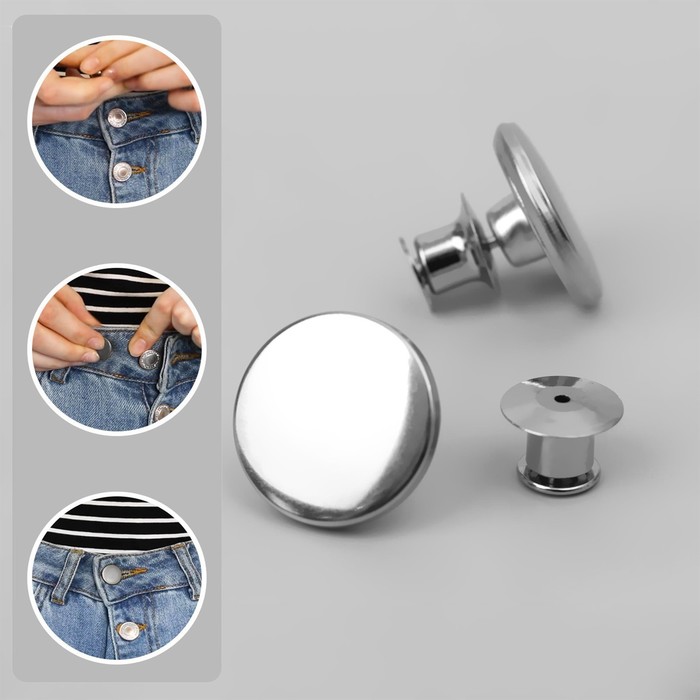 Пуговицы для сужения пояса, 17 мм, 2 шт., цвет серебряный