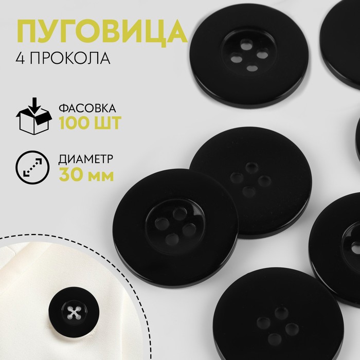 Пуговицы на ножке, d=25 мм, набор 5 шт., глянцевый, чёрный