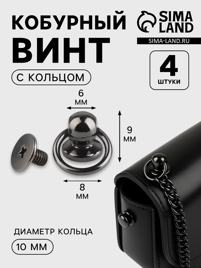 Кобурный винт d=6/8×9 мм, с кольцом d=10 мм, 4 шт., цвет чёрный никель