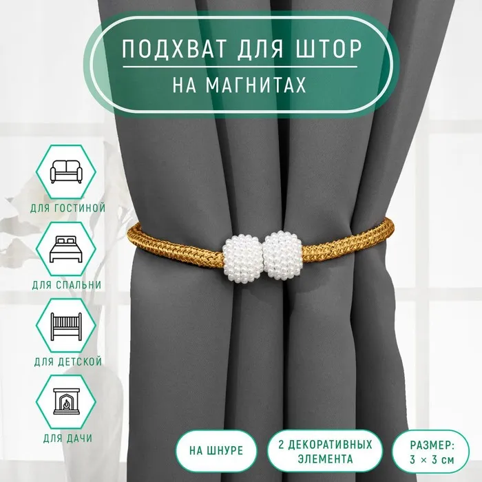 Подхват для штор «Шарики из бисера», d=3×40 см, цвет белый, золотой
