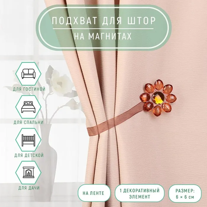 Подхват для штор «Жемчужина», 4×4 см, коричневый