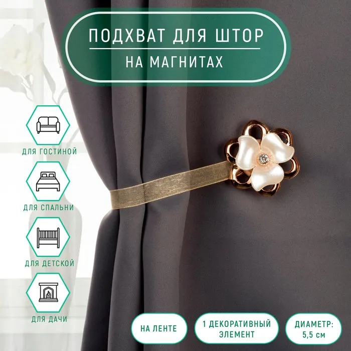 Подхват для штор «Цветок перламутровый», d=5.5 см, цвет молочный, золотой